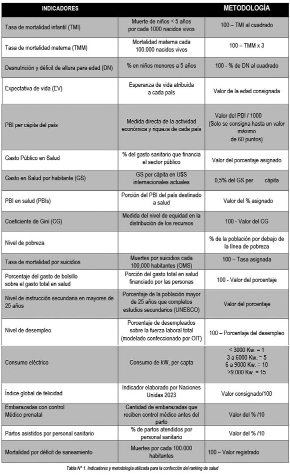 En la Tabla N°1 se enumeran los indicadores utilizados y