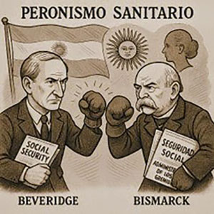 En la Argentina este proceso fue concomitante con diez años del primer peronismo que llegaba manteniendo en su seno una fuerte contradicción en materia de salud, por un lado un ministro como Carrillo que incluso se anticipaba al NHS y proponía un sistema sanitario universal y público y por el otro los sindicatos que ya tenían cierta presencia no tan extendida pero habían comenzado a plantearse jugar un rol relevante en la salud de los trabajadores (ferroviarios era quizás el ejemplo más desarrollado de lo que menciono) y al mismo tiempo el estado paralelo que fue creando la fundación Eva Perón con una serie de inversiones en infraestructura sanitaria y con caja propia fuera de la estructura fiscal del Estado.