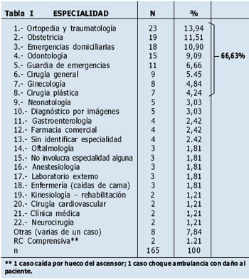 3.- ESPECIALIDADES MEDICAS INVOLUCRADAS EN LOS RECLAMOS