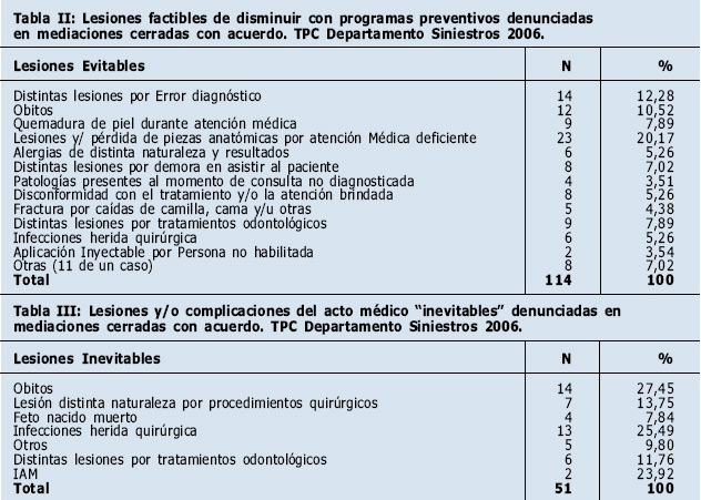 Las lesiones y/o complicaciones al acto médico inevitables