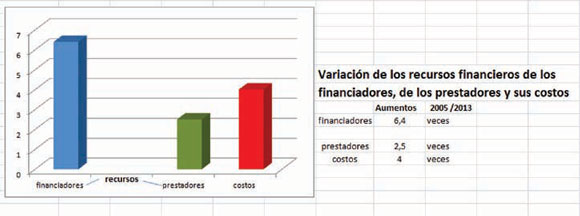 financiadores (6,4 veces) y el menor incremento en ese